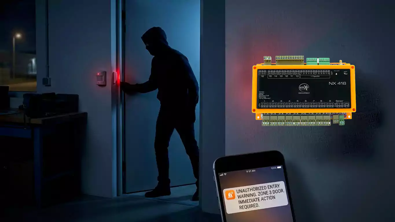 با امکان اتصال تعداد نامحدود مگنت و چشمی، این دستگاه میتواند بهعنوان یک دزدگیر قدرتمند نیز مورد استفاده قرار گیرد. در صورت ورود غیرمجاز در ساعات غیرکاری، سیستم بلافاصله فعال شده و هشدار فوری از طریق پیامک برای شما ارسال میکند؛ حتی زمانی که در محل حضور ندارید.